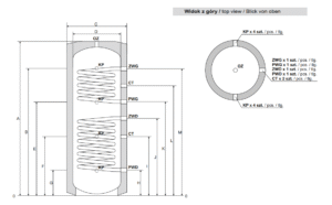 Bufor 1000l bez wężownicy - wymiary
