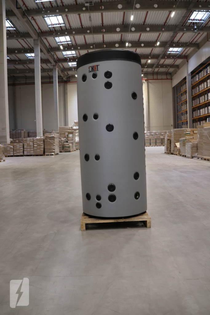 Aby instalacja pracowała wydajnie, temperatura wody w buforze powinna wynosić co najmniej 50–55°C. Bufor może współpracować z kotłami, instalacjami PV i pompami ciepła, a także z grzałką elektryczną do 12 kW.