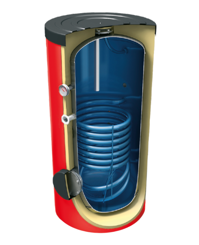Wyposażona w spiralny wymiennik ciepła o powierzchni 1,2 m². Sprawdzi się przy współpracy z jednym źródłem, np. kotłem gazowym, olejowym, pelletowym lub kompaktową pompą ciepła.