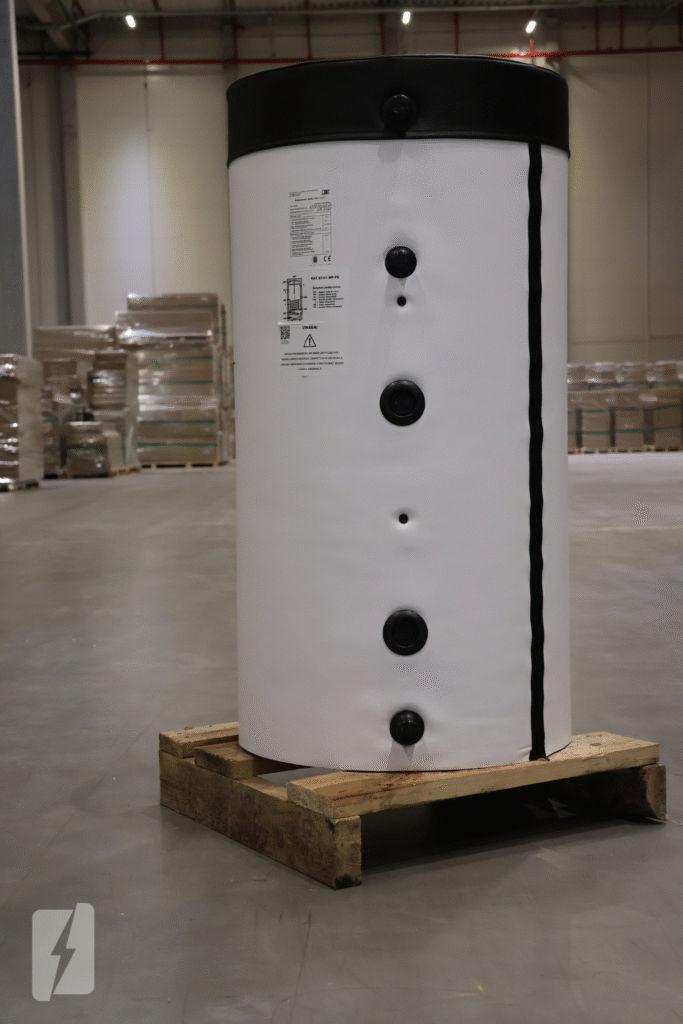 Kupując zasobnik 300l model BT-01, otrzymujesz dokładnie taki zbiornik, jaki widzisz obok – fabrycznie nowy, w solidnej izolacji, starannie zabezpieczony i zafoliowany na czas transportu 🚛✅.