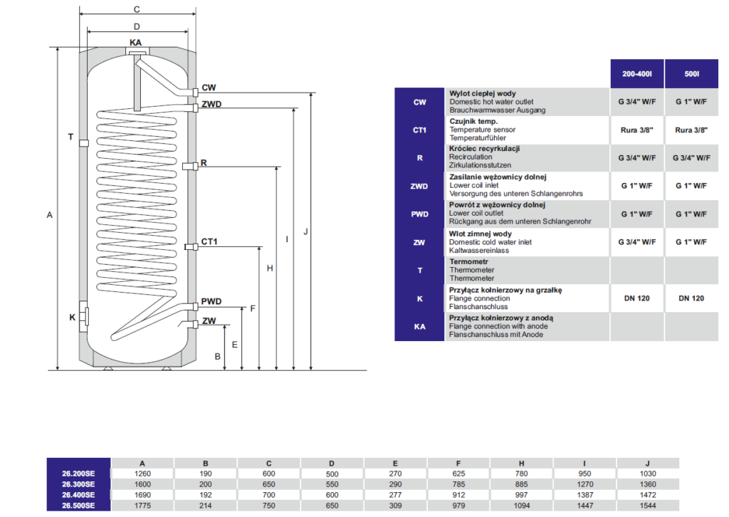 Bojler 500l do pompy ciepła – zasobnik CWU 500l z dużą wężownicą 4,88 m²